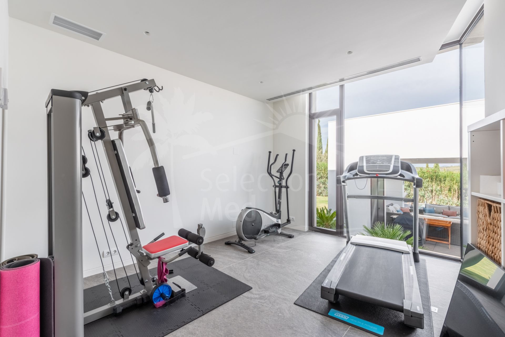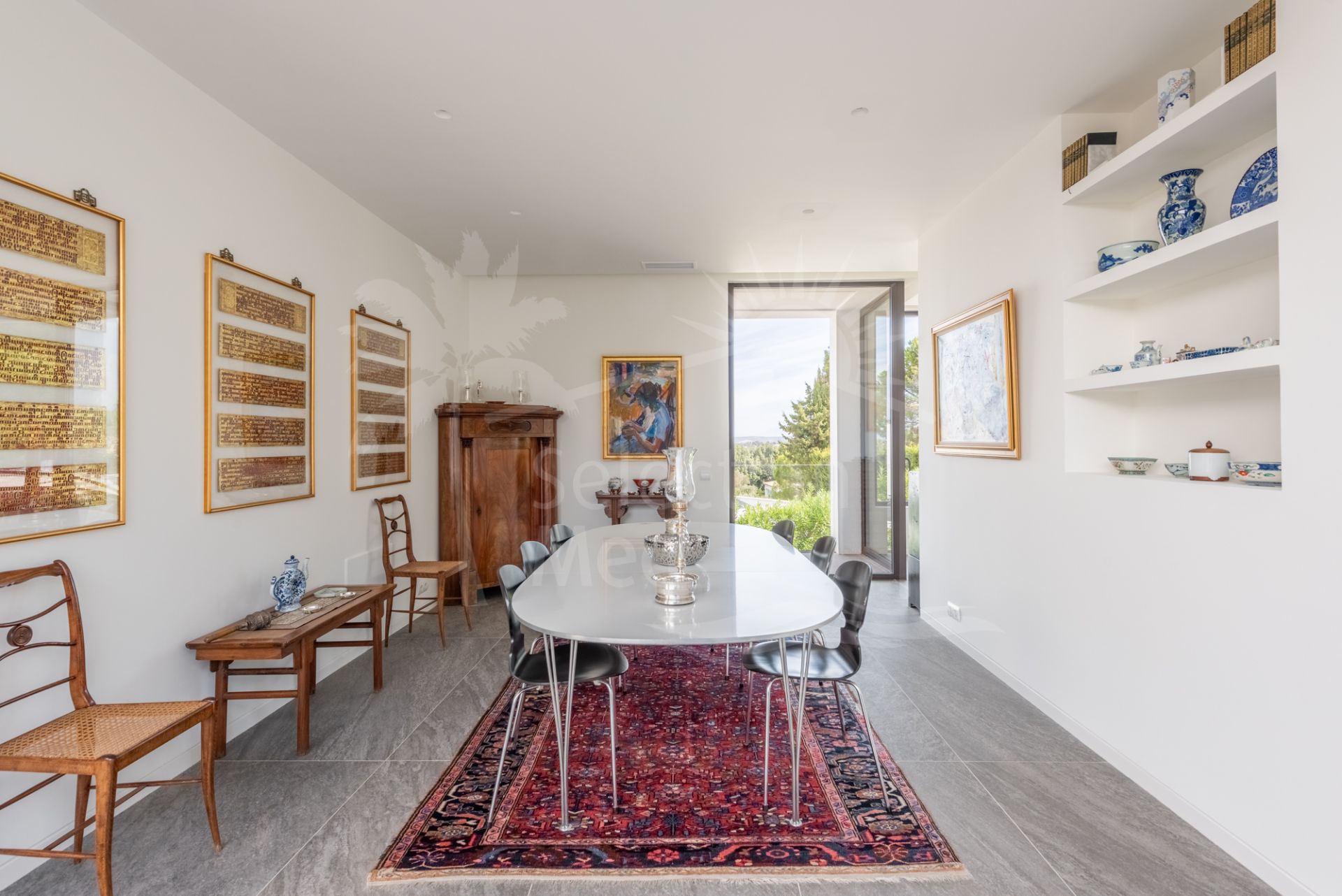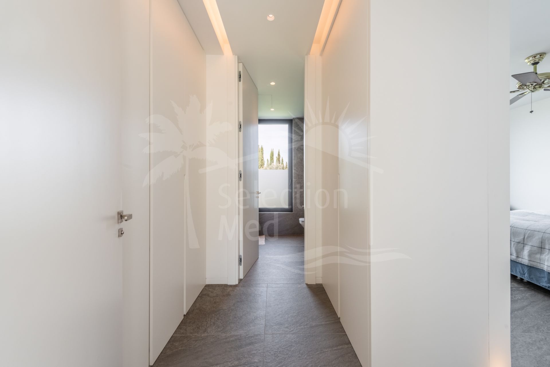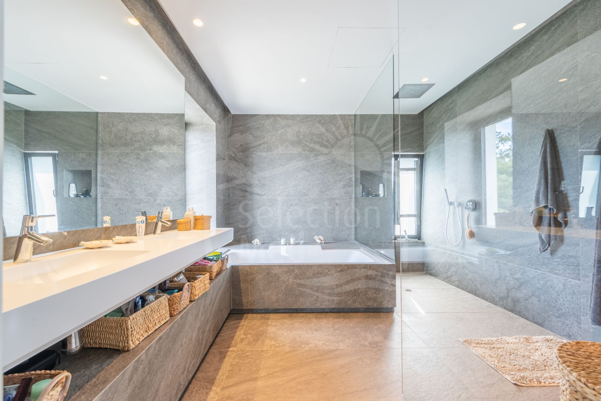 Villa à vendre à Zona F, Sotogrande Alto avec 5 chambres, 4 salles de bains, 1 toilettes, construit à 2018 et a piscine (privé), garage (privé) et jardin (privé). Dimensions: 650m² construit, 1644m² parcelle, 602m² intérieur et 48m² terrasse.